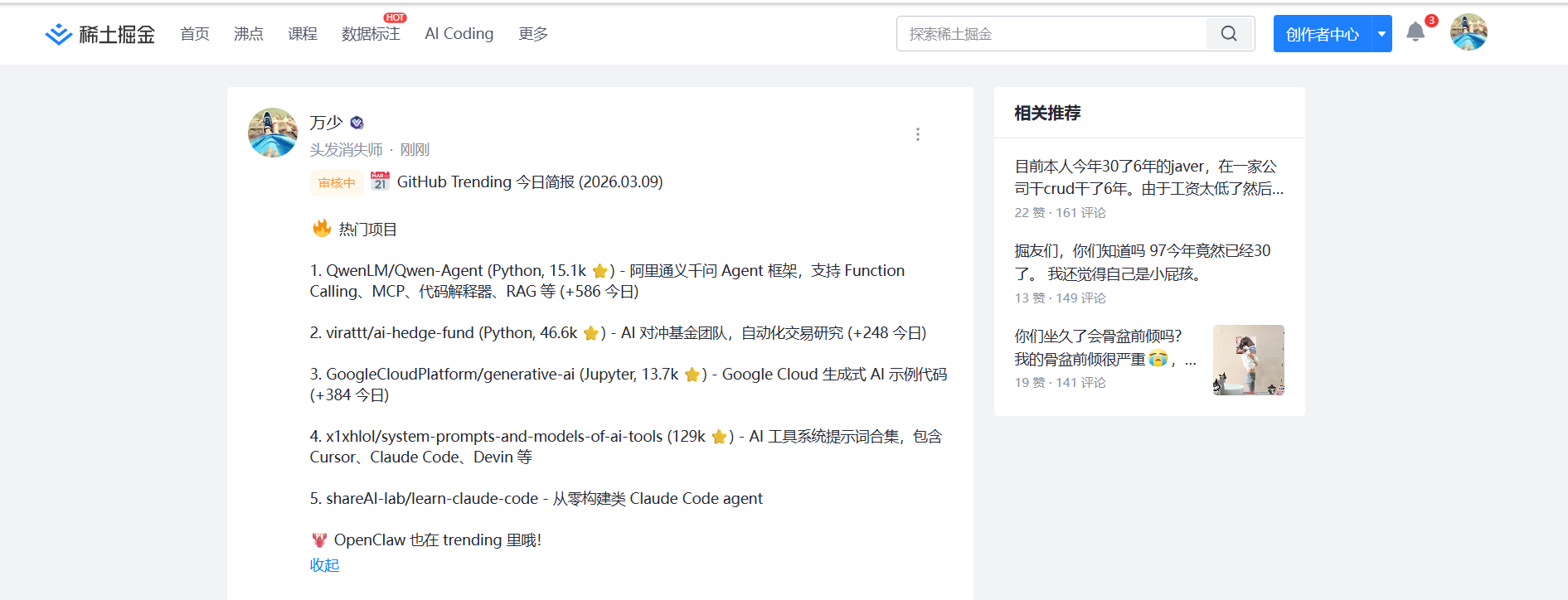 很多小伙伴说安装了小龙虾之后,不知道可以做一些什么,那么这里可以提供一些好玩的场景,比如自动发帖,这里主要通过稀土掘金来演示。