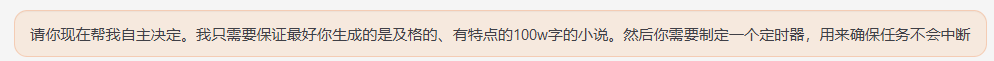 请你现在帮我自主决定。我只需要保证最好你生成的是及格的、有特点的100w字的小说。然后你需要制定一个定时器,用来确保任务不会中断