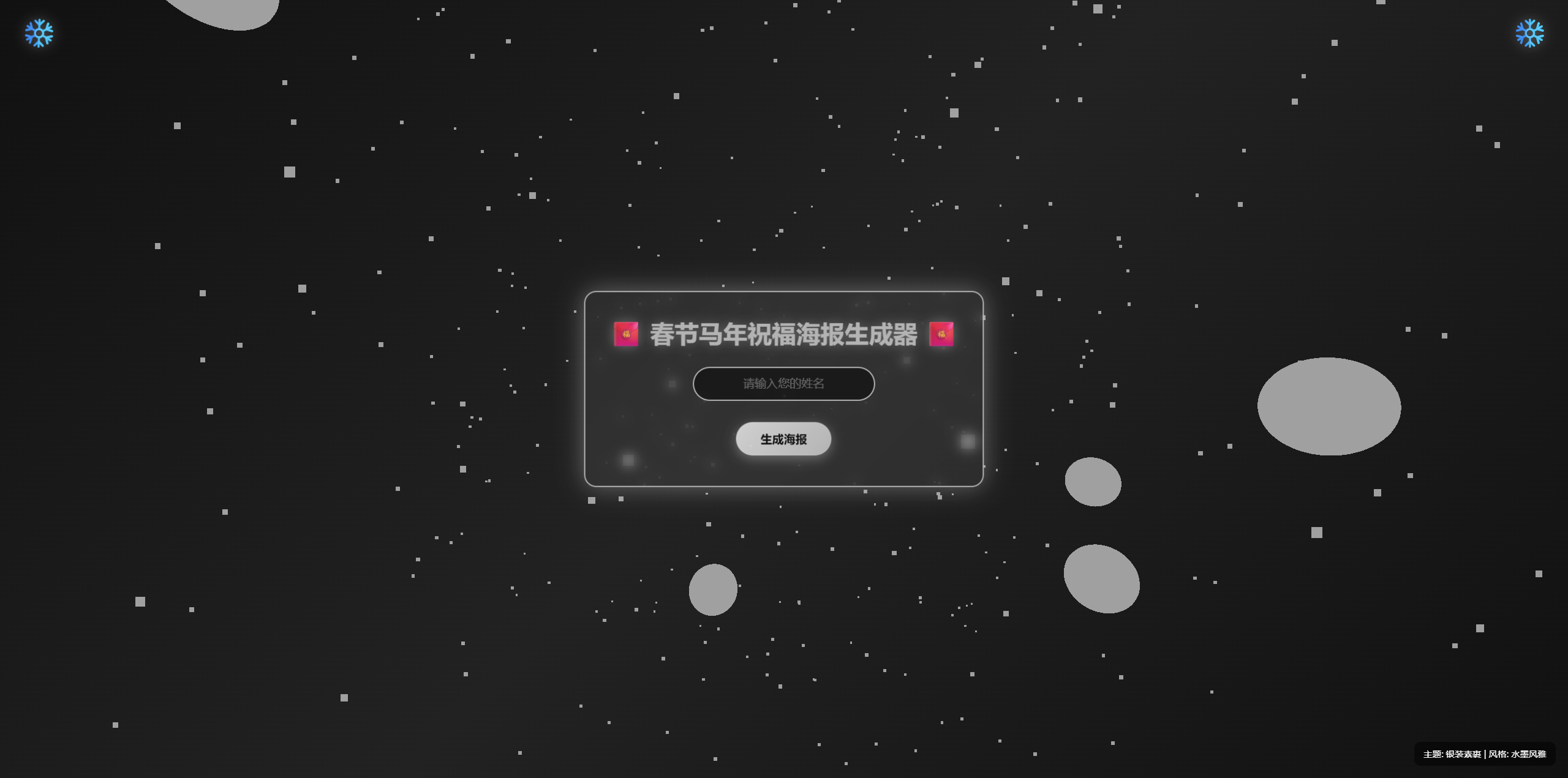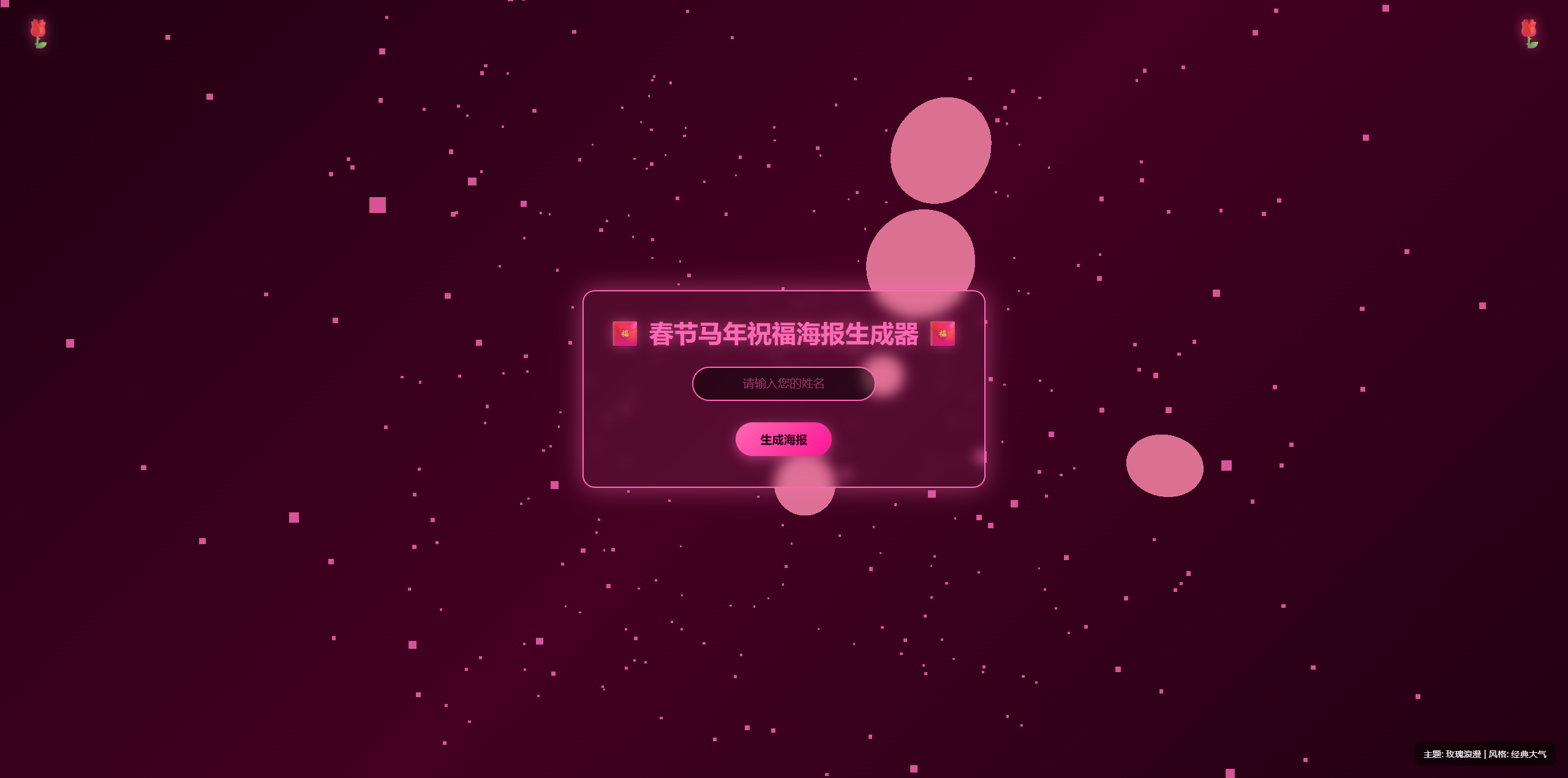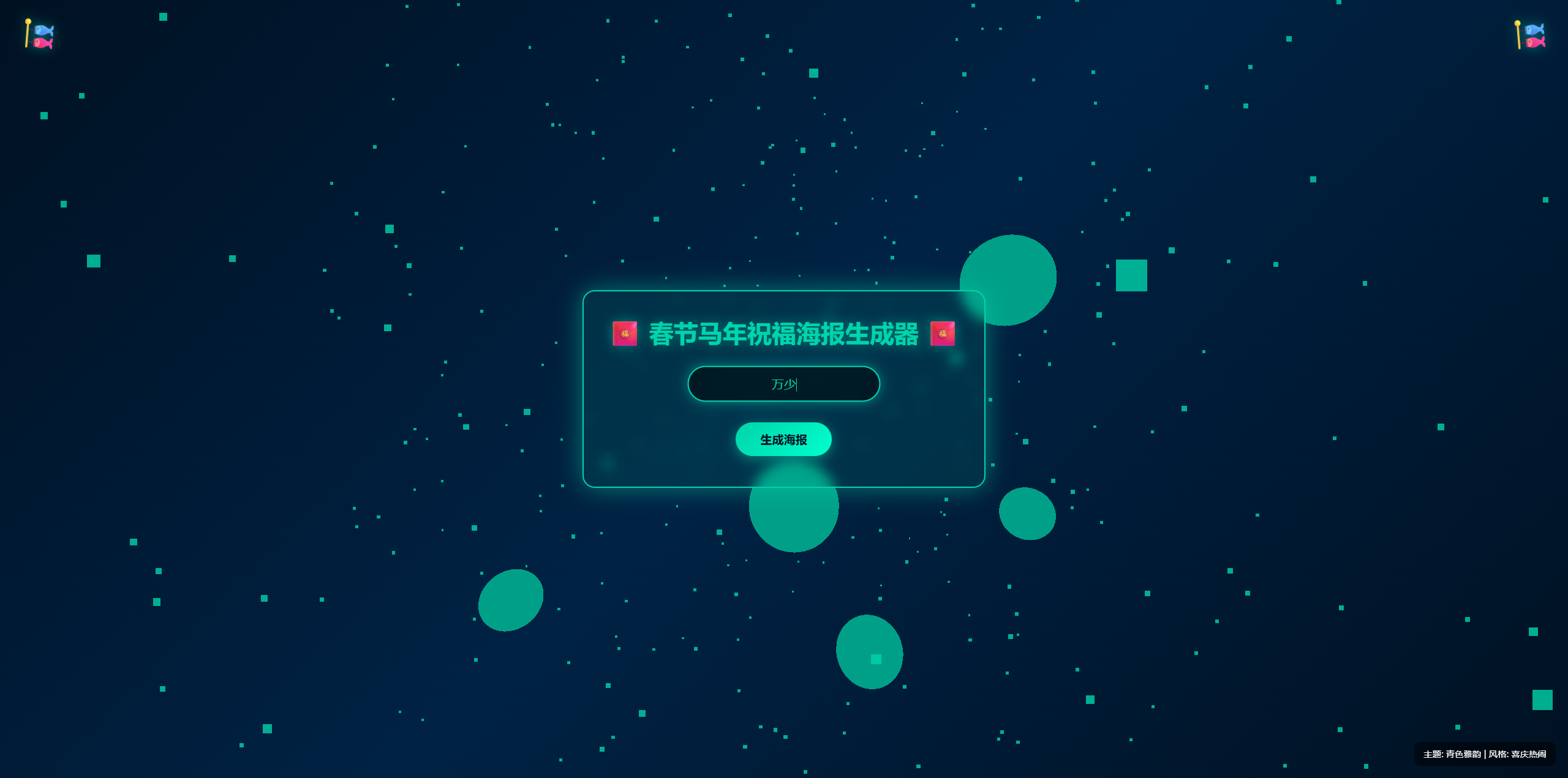 春节马年祝福海报生成器是一个基于 HTML + CSS + Three.js 开发的春节主题互动网站。