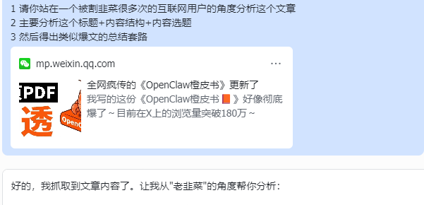 用龙虾 openclaw 拆解网络爆文-说不定你也可以参考写一个