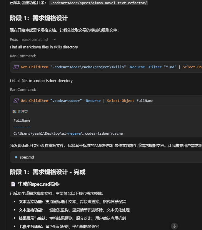 接着码道自己开始帮我生成这个工程的需求规格文档。