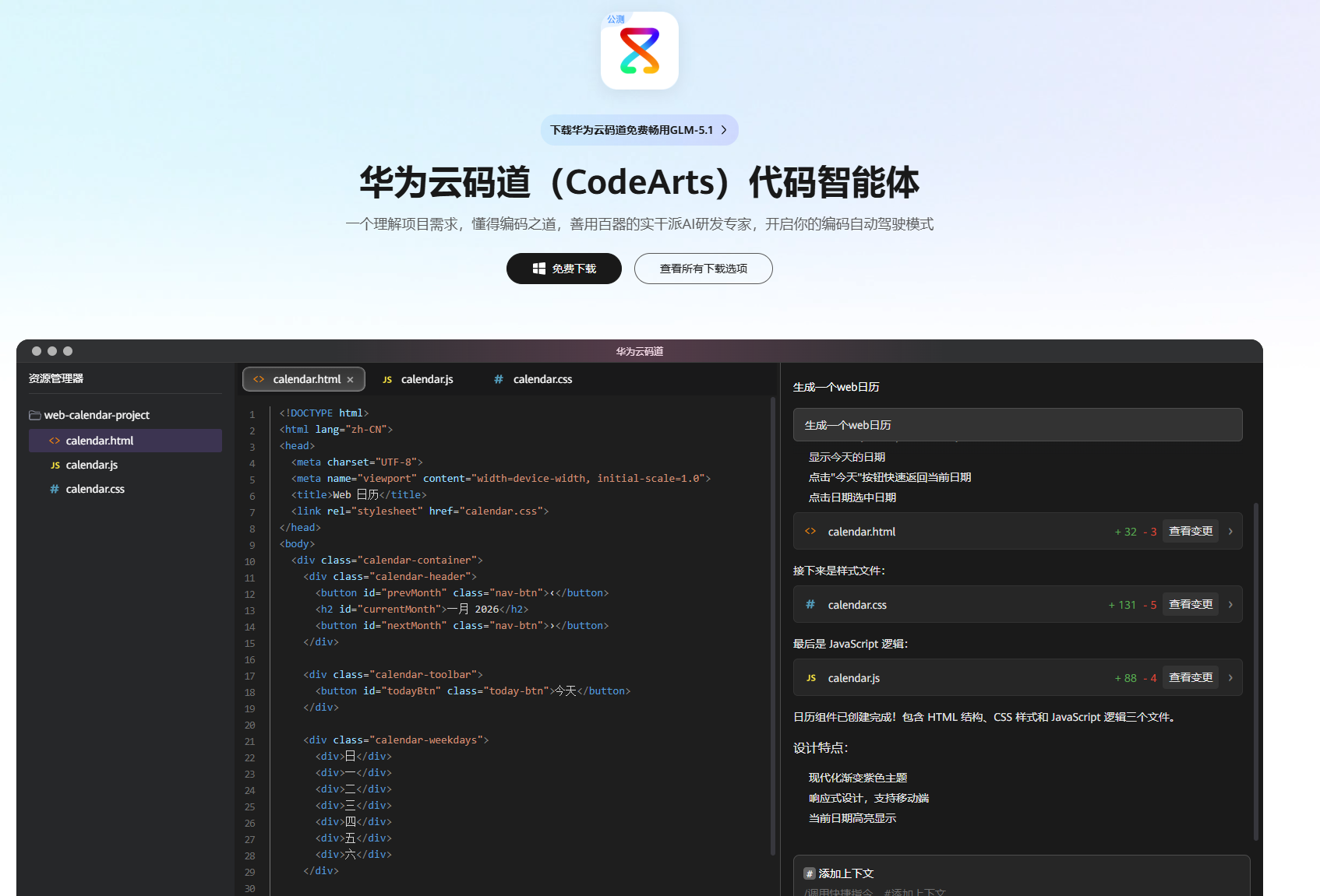 码道(codeArts) 解决openclaw ⽣成⼩说的质量 支持免费使用GLM5.1