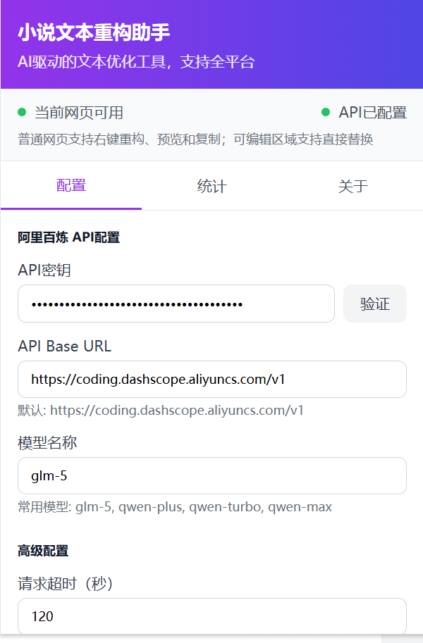 插件想要实现优化文本的功能,其实也是需要用到AI能力的,所以在开发的时候,我也添加了插件中添加兼容openAI大模型的配置。允许用户自己填写自己的模型配置。