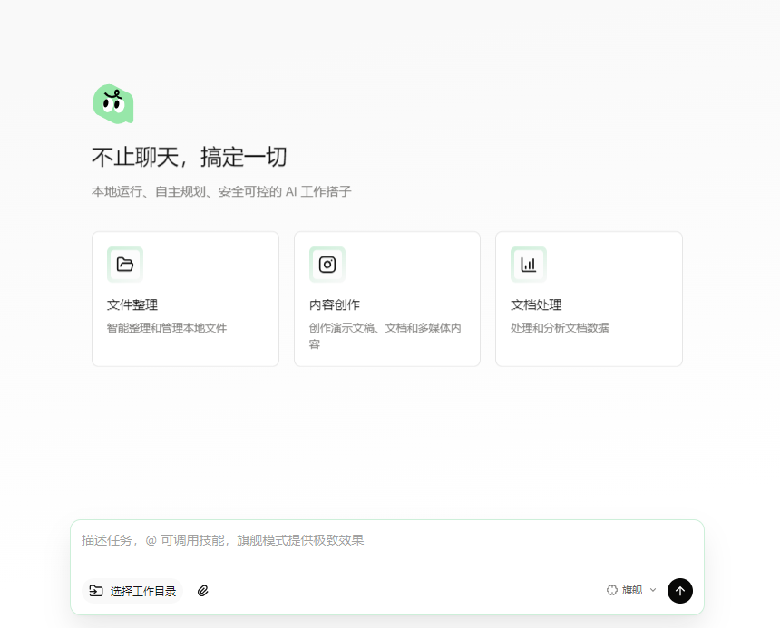 市面上的 AI 工具大多还停留在"你问我答"的阶段。但 QoderWork 的定位完全不同,官方用了一句非常直接的话来概括:"不止聊天,搞定一切。"